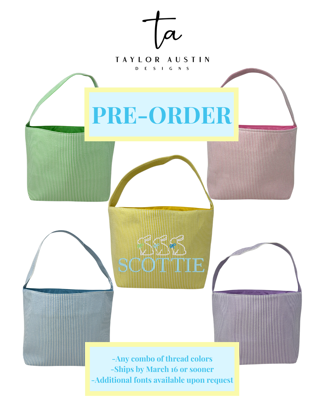 Embroidered Seersucker Bunny Easter Basket